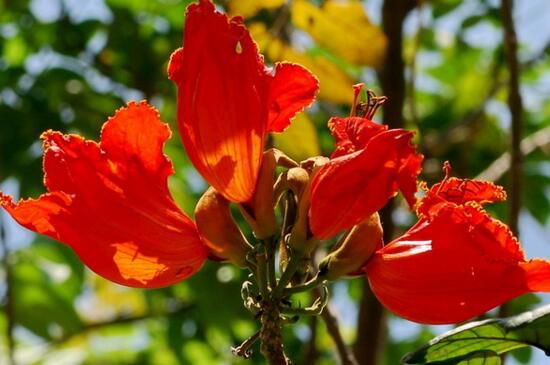 在养殖火焰树的时候,注意及时剪去徒长的枝条,在火焰树枝条发新梢时,要剪去该枝条1到2节的部分,这样不仅可以防止火焰树徒长,还能让树形更漂亮。在火焰树结果后要及时摘掉果实。