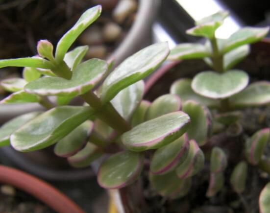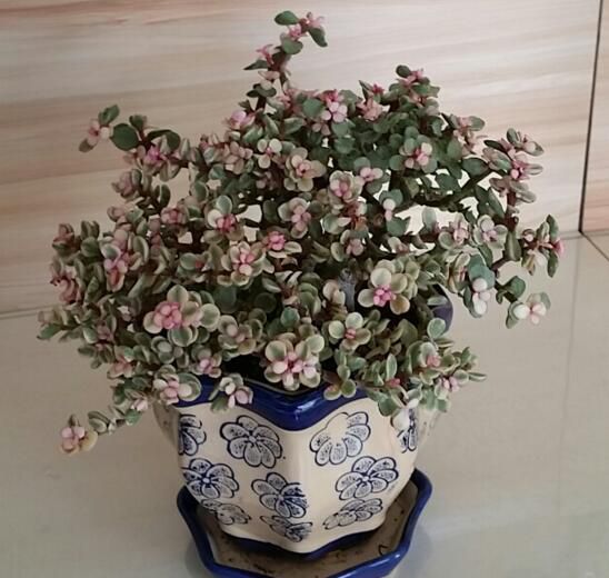 钱串景天的叶色在初期时呈现灰绿颜色,后期会逐渐的变为微红,叶子的边缘的棱角是不太明显的,并且叶片也是紧凑状态,是景天科青锁龙属多年生肉质植物,小米星在强光的环境下,植株的叶子会变成红色,叶片边缘有明显的...