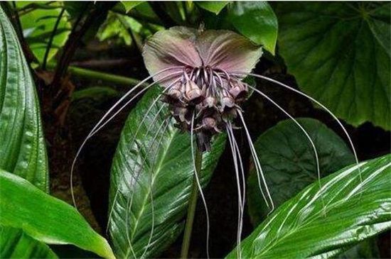 蝙蝠花又名老虎须,是一种非常像老虎须的花朵,真的是妖孽至极,它的花语是神秘的自恋。老虎须是一种很稀有的观叶观花的植物,它的花朵是罕见的紫褐色至黑色,十余条紫褐色的丝状物从两边下垂,就像老虎的胡须一样。