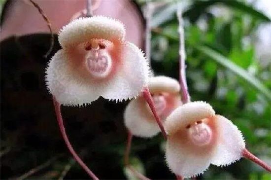 猴面小龙兰很相像的描述了这种花朵的外型,就像一个长满毛的小猴的头部一样。就像一个想要调皮和恶作剧的小猴子躲在花瓣里面一样。除了猴脸外,这种兰花还长有两根长刺和两个长萼,看起来真的是怪异极了。