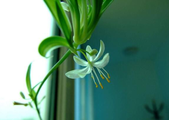 吊兰是非常有观赏价值的植物,叶子细长柔软,生长时会盆沿向下垂,舒展散垂就像是一朵绽开的花朵,给人以柔和美丽之感。而且是四季常青,冬天也不会枯萎,花期是在夏天,会开上一些小白花,加上黄色的花蕊,非常适合美化居室。