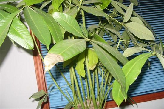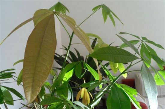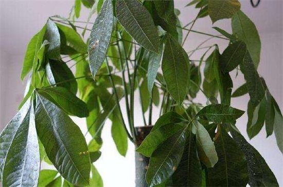 如果发财树浇水过量使盆中积水,也会使发财树叶子下垂茎无力,如果是浇水过量造成的,需立刻给其做好排水措施,摆在温暖的阳光下细心养护,如果积水严重那么需剪掉烂根,更换新的盆土重新养殖。