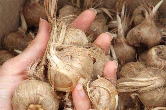 在每年的10~11月开花的藏红花不会结果,主要依靠底部扁圆形的球茎进行繁殖。其球茎外层表皮带有多层膜质鳞片,看起来为淡棕色,将其剥开可看见球茎内部为乳白色,而且在上面有环节和腋芽分布。