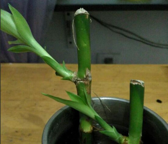 如果是由于长太高了造成弯曲,那我们唯一的办法就是把它的根部剪掉,然重新放回水里或盆土里面养殖,在剪的过程中,我们可以把它斜着剪,这样就可增大了接受养分的面积,长得更加粗壮也能避免富贵竹长弯了怎么办的这类问题了。