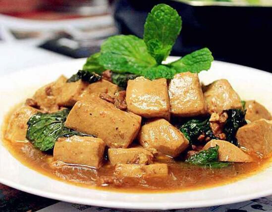 将豆腐洗净切块,煎至微黄,加入适量鲜薄荷、鲜葱和水煮,待汁快干时盛起食用。薄荷豆腐有治疗伤风鼻塞、打喷嚏、流鼻涕的功效。