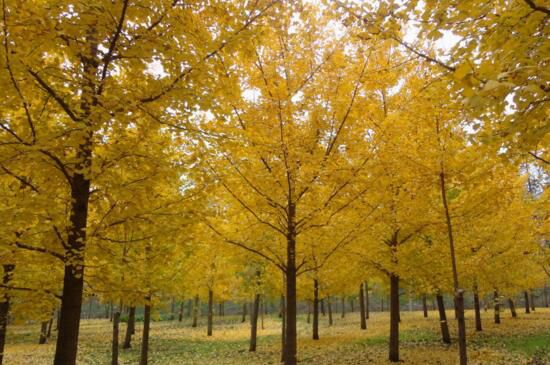 银杏在城市绿化树木品种中是最诗情画意的一种了。是喜光照的落叶大乔木,叶子似扇形,春夏天郁郁葱葱,秋天叶子金黄夺目,在园林绿化中多用来做行道树,护路、护岸、护村林栽种。其果实还有祛痰止咳的功效。