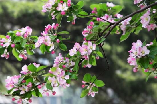 海棠是常绿的乔木,喜光照半阴凉环境生长。有“花中神仙”之称,多用于人行道的行道树或者成片栽种,其果实有“百益之果”的美称,有通气止痛的功效,也可制作成蜜饯食用。