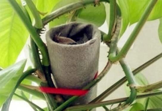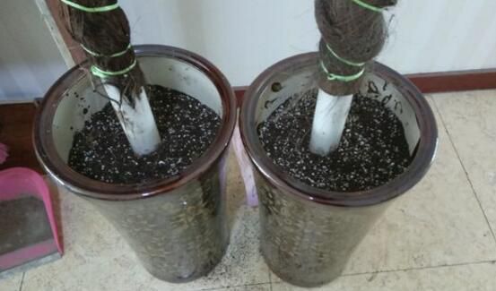 将PVC管插入花盆中央并将其固定住,还要经常检查一下这根柱子是否结实,由于花盆加了柱子之后重心变高,结构可能会不稳,很有可能倾倒摔坏,可能将已经培养好的绿萝柱给毁坏殆尽。并将棕树皮将整根支柱包裹捆扎好。