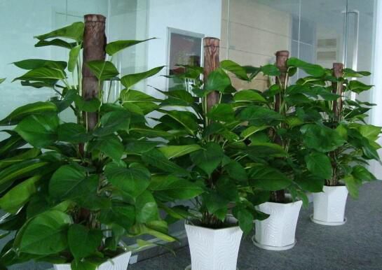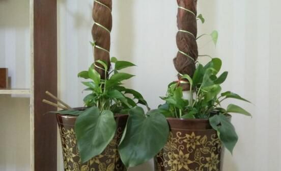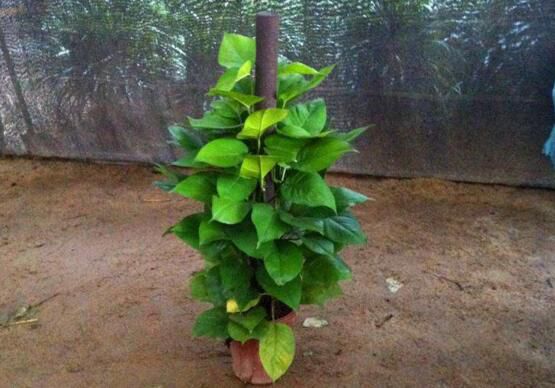 随后可以将绿萝扦插在支柱的四周,等到生根之后,就可以做茁壮成长了,如果没有支柱作为支撑的话,绿萝通常是会向四周蔓延生长,等到绿萝长到一定地步的时候,就将其绑在支柱上面,一面生长一面捆绑定植,形成固定的造型。