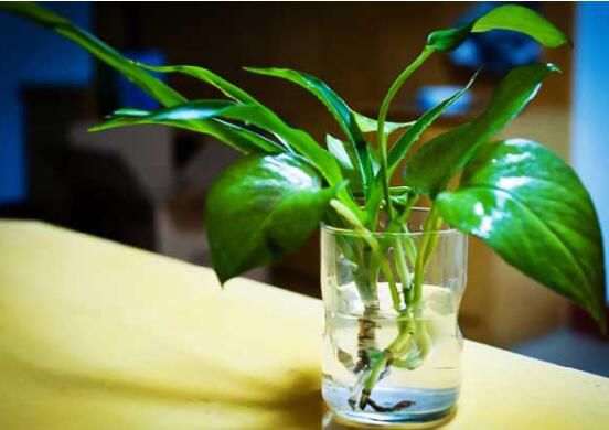 绿萝还有一种扦插方法,那就是水插。绿萝用顶芽水插,直接剪取嫩壮的茎蔓20厘米至30厘米长为一段,直接插于盛清水的瓶中,每2天至3天换水一次,10多天可生根成活。