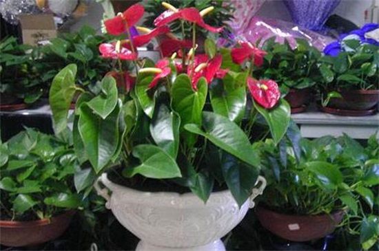 红掌具有着很高的观赏价值,而且红掌一年可开两次花,种植红掌后,来年的夏天会开一次花,秋天再开一次花,花期可长达3~4个月,平时给红掌充分的光照,冬天将气温控制在15℃,并提供充分的水分和养分,它也可以一年四季开花。