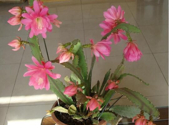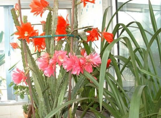 令箭荷花 春天是令箭荷花生长季节,要注意光照充分,到了夏天的时候就要避免阳光直射了,接受散光还是可以的。夏天的强光会使其生长受抑制甚至死亡,但是蔽荫处生活过度则不易开花。