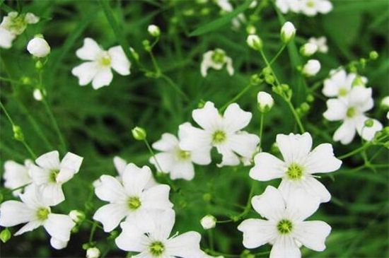 满天星开花还要勤施薄肥为它补充养分,通常10天左右就要为满天星追施一次氮肥,促进其生长,花期前一个半月开始改施磷钾肥。并要适量浇水,保持土壤湿润即可,花期要减少浇水,以免枝叶徒长不开花。