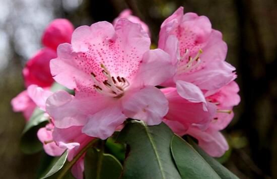 图片中可看到高山杜鹃绮丽多姿的形象,花朵边缘有点像“心形”,有“爱的快乐,想与你共创明天“的含义。深红色斑点更显不同,花开时香气迷人。