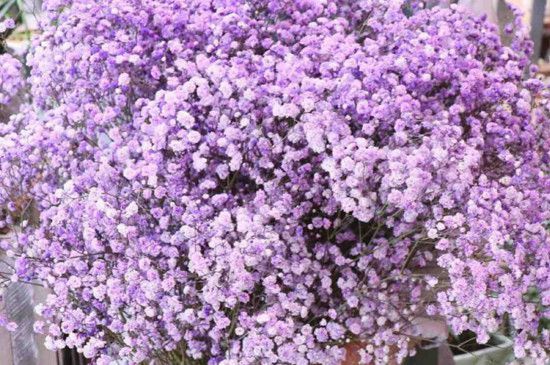 满天星又被称为圆锥石头花,属于多年生草本植物,每年6~8月开花,它的花朵有多种颜色,其中最漂亮的是紫色满天星,紫色满天星花语和寓意也是很美好的,它的花语是思恋,远在他乡思恋亲人、心爱之人时就可以给他们送一束紫色满天星。