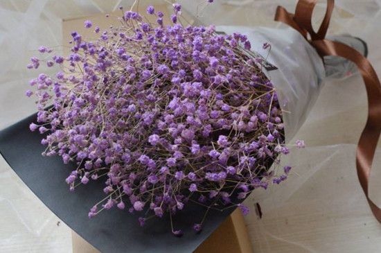紫色满天星的花朵不像玫瑰花一样鲜艳欲滴,花瓣也没有玫瑰花大,但它的花朵看起来却一番别样的韵味。平时可以将满天星搭配玫瑰送给心爱之人,寓意着情有独钟;也可以满天星搭配康乃馨送给长辈,寓意着尊敬、敬佩。