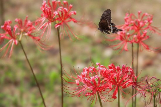 彼岸花又被叫做“曼珠沙华”。它生长的地域主要在石头缝、坟头或者是极其阴暗的地方。每到秋天的时候,墓地和河岸边的彼岸花都开始绽放,成片赤红色的彼岸花朵看起来极其的诡异、触目惊心。