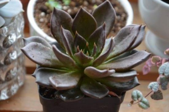 黑王子与黑法师在叶片上也存在着很大的不同,黑王子的叶片呈现匙形,并且叶片是比较厚重的,叶片紧凑在一起生长,正常的黑王子一株会长有100多片的叶子,黑法师的的叶片是比较薄弱,叶片集中生长,类似于菊花形。