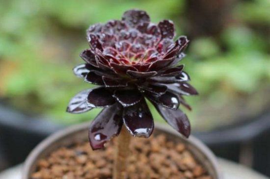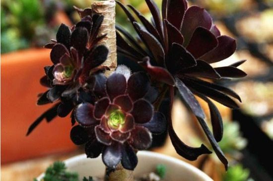 黑王子与黑法师在茎干上也会有所不同,黑王子的茎干上会长有较短的柄茎,并且株型是比较优美的,黑法师的多生分枝,随着时间枝干会逐渐的呈现木质化,并且它的茎干是呈现圆筒形,外皮则是褐色。