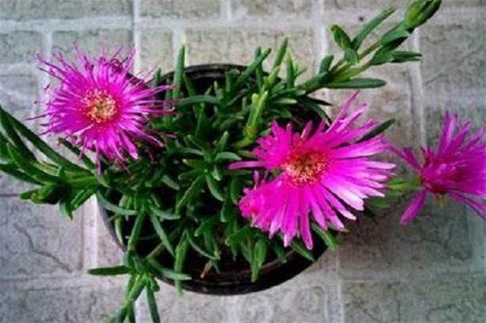 松叶菊是番杏科松叶菊属植物,叶片是三棱线形的,叶片也是粉绿色的,每年大概在春季时开花,如果养护得当可能也会在夏秋时开花,太阳花是马齿苋科马齿苋属植物,叶片是圆柱状线形、狭披针形状,每年大概在7~8月时开花,松叶菊的耐寒性比较强。