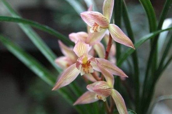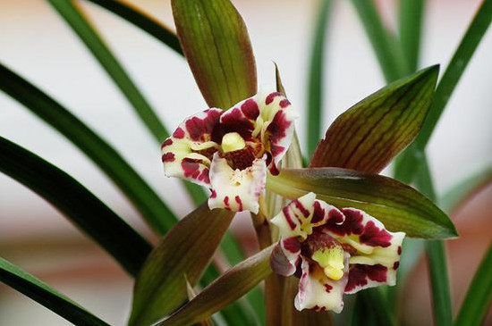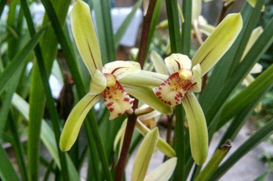兰花花梗细园高挺长出叶架,若是花梗粗壮、弯曲、方棱或是低矮为劣质品种。