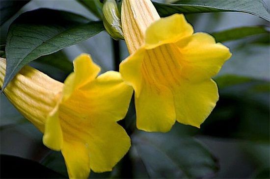 软枝黄蝉的花朵主要为聚伞花序顶生,花柄很短,花苞主要为披针形,长度约为1公分左右,花冠为橙黄色,花色主要为黄色、或者浅黄色,而硬枝黄蝉的花朵主要为橙黄色,长度约为4~6公分左右,看起来要比软质黄蝉的大些。