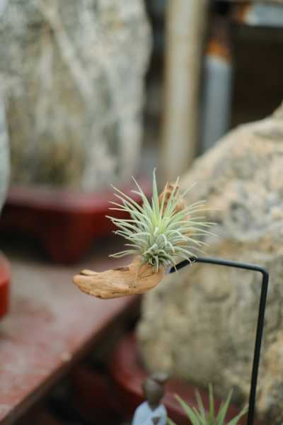 空气凤梨并不适合在器皿中养殖,可以直接放在花架上养殖。同样发现发黑后首先要将其剪掉。