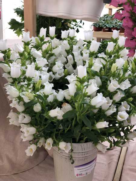 温柔的爱:风铃草开在春末夏初,花朵和花蕊都比较小巧,色彩也以暖色系为主,是健康和温柔可爱的象征。