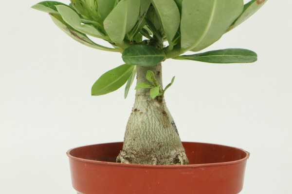 给沙漠玫瑰做扦插时,时间在春夏季节比较合适,因为那时候气候稳定。先截取十公分左右的一年生以上的枝条,顶端的最好,放进生根水浸泡三十秒,插进有河砂和锯木屑混合而成的土基,放置阴凉地方,等它生根。期间不用过多浇水,保持土湿润就可以了,等它生根后就可以移植盆里了。